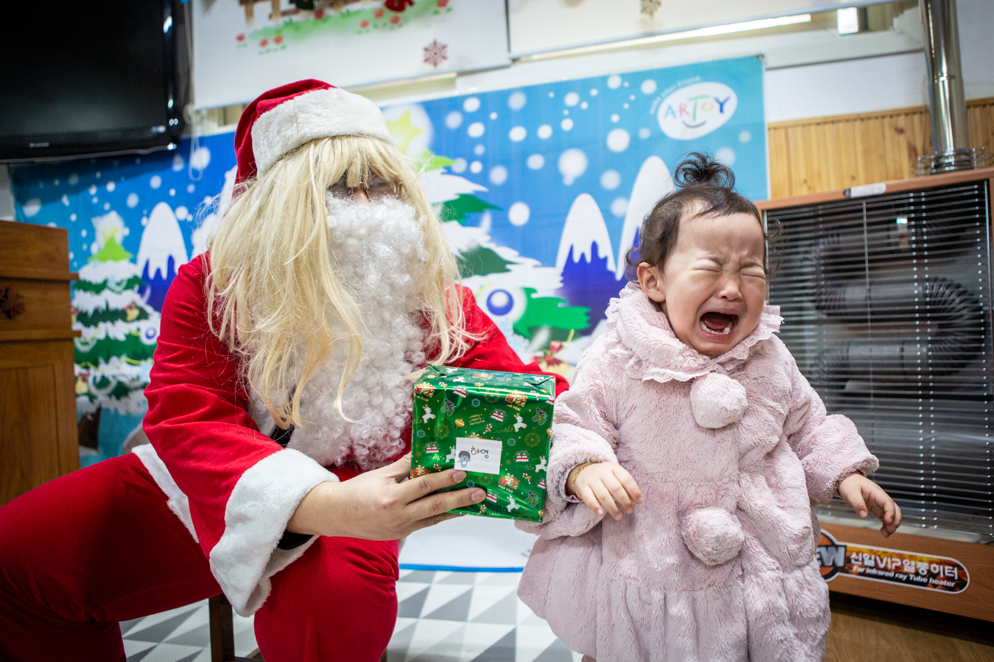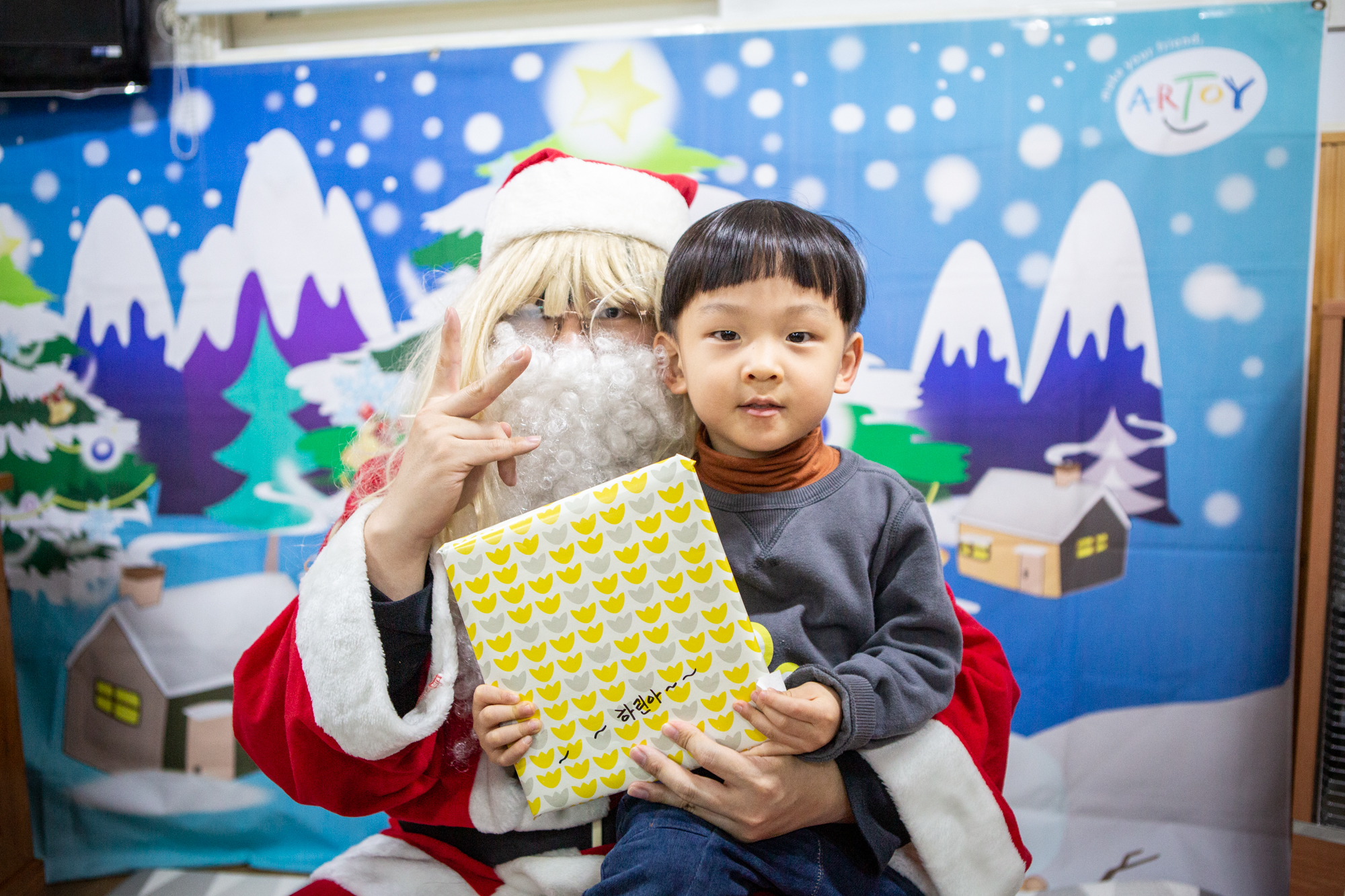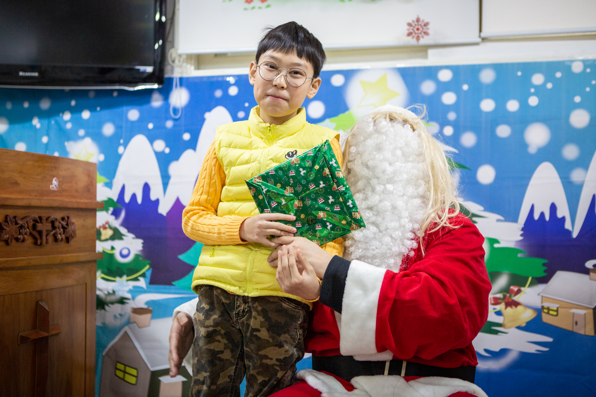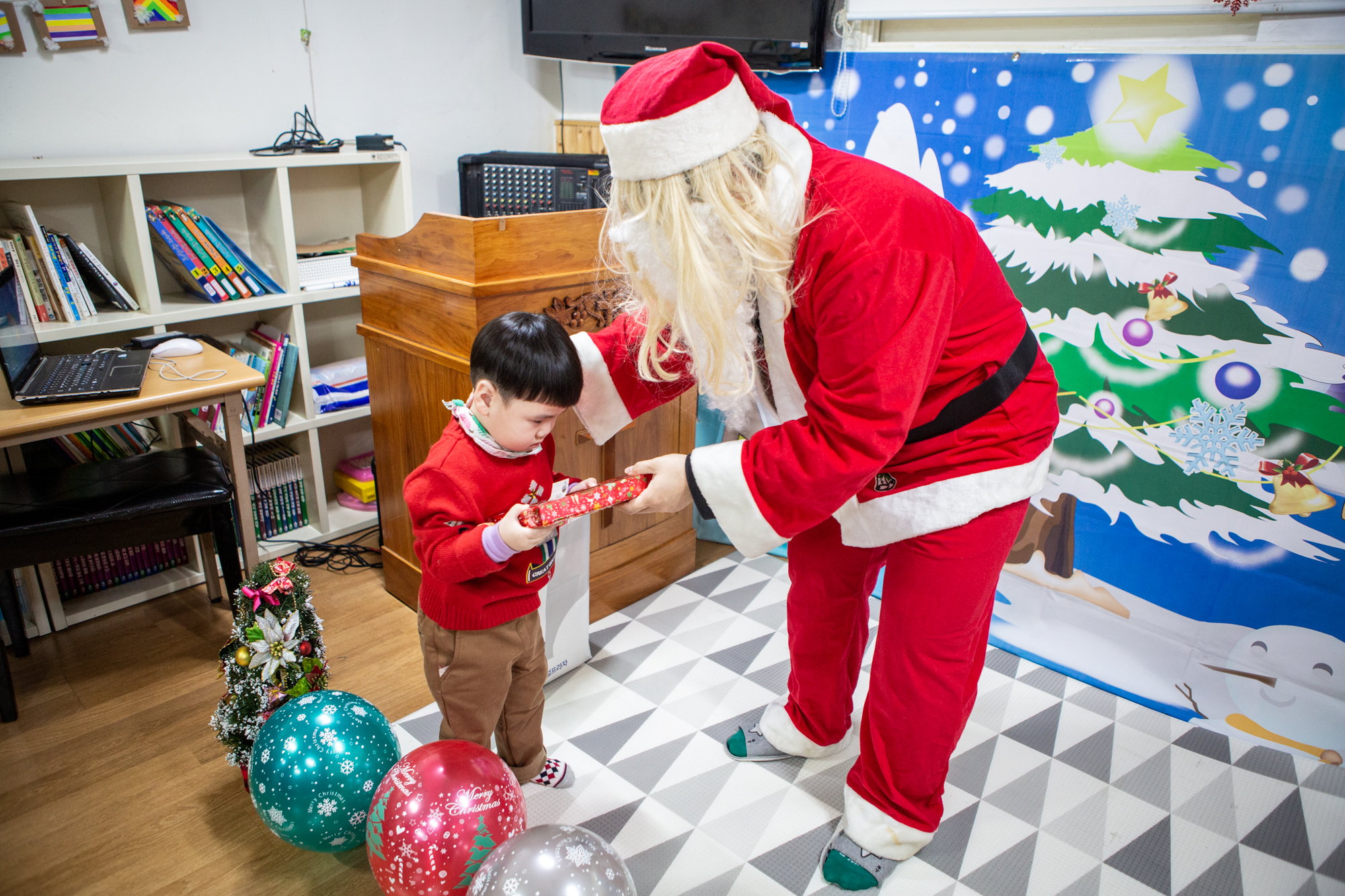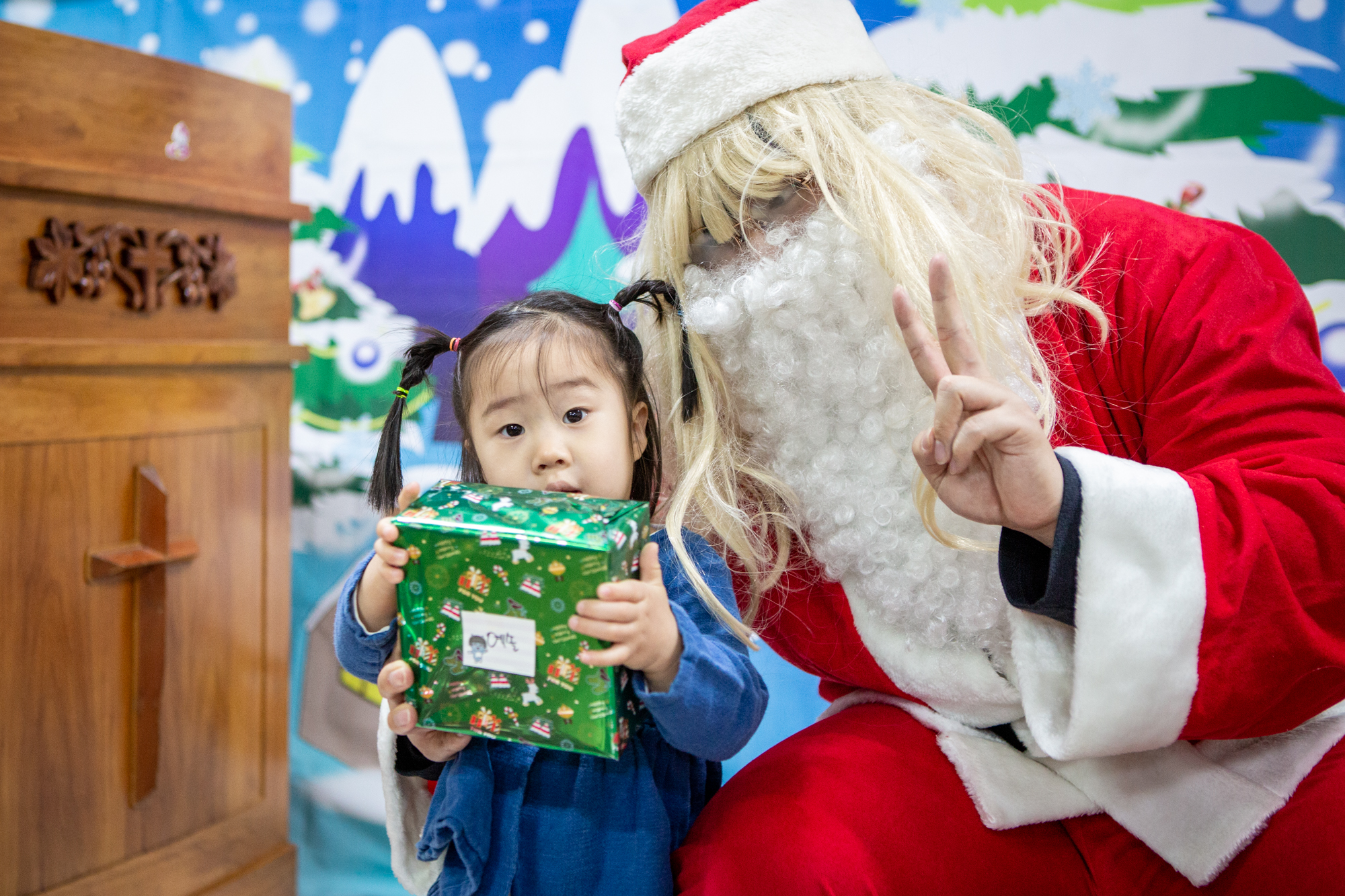 예배 후에는 주일학교에서는 산타 선생님(?)이 등장해서 아이들에게 선물을 나눠줬어요~